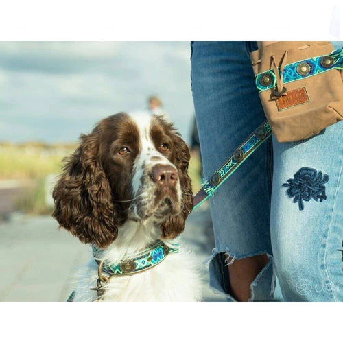 Ihr Hund wird mit der Hundeleine Boho Juan von Dog With a Mission jedem die Show stehlen. Diese wunderschöne Hundeleine mit blauem gewebtem Seil und Messingdetails ist ein echter Hingucker. Die Hundeleine lässt sich perfekt mit dem DWAM Halsband Boho Juan kombinieren.