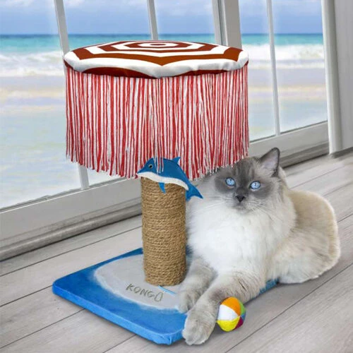 KONG Play Spaces Catbana ist das perfekte Spielzeug, um die Spielzeugsammlung Ihrer Katze zu ergänzen. Es ist wichtig, dass eine Katze genügend Reize in ihrer Umgebung hat, um ihren Jagdinstinkt zu entwickeln. Kratzbäume und Spielzeuge bieten Ihrer Katze ebenfalls eine Möglichkeit, ihre tägliche Energie zu nutzen. Der KONG Play Spaces CATbana bietet das Beste vom Kratzbaum mit dem Besten von Spielzeug. Das liegt daran, dass der Kratzbaum verschiedene Strukturen hat, die die Aufmerksamkeit Ihrer Katze auf sich ziehen. Der Kratzbaum besteht aus natürlichem Material, das zum richtigen Kratzen anregt. Der Sonnenschirm hat mehrere Fransen, mit denen Ihre Katze spielen und daran herumziehen kann. Ihre Katze kann sich auch hinter den Fransen verstecken. An dem Sonnenschirm hängen auch zwei kleine Delphin-Spielzeuge. Ihre Katze wird sich auf diese Spielzeuge stürzen, mit ihnen spielen und sie mit den Pfoten anfassen. Man kann also mit Sicherheit sagen, dass der KONG Play Spaces CATbana beim Spielen alle Sinne Ihrer Katze anregt.