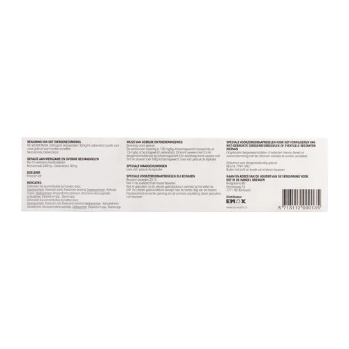 Lesen Sie vor der Anwendung immer die Packungsbeilage. Hier können Sie die genaue Dosierung für Ihr Haustier finden. Sie können die Entwurmungspaste sanft in das Maul Ihres Haustieres sprühen oder sie unter das Futter mischen.