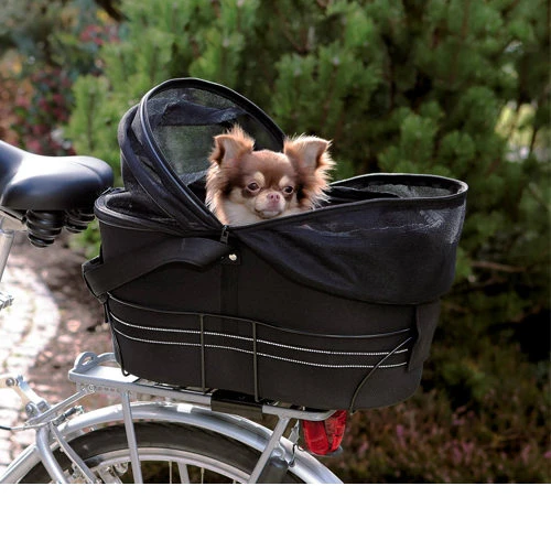 Die Trixie Fahrradtasche mit Schutznetz-Abdeckung eignet sich bestens, um kleine Hunde komfortabel und stilvoll auf dem Rad mitzunehmen. Zudem ist die Hundetasche auch noch sicher, denn sie verfügt über Reflektorstreifen und kann auch verschlossen werden, und trotzdem kann Ihr kleiner Vierbeiner doch noch nach draußen schauen.
